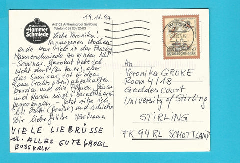 AK Anthering bei Salzburg. Waldpension Hammerschmiede. Gelaufen. Großformat. Zustand: Knick am linken Rand, rechtes oberes Eck geknickt.