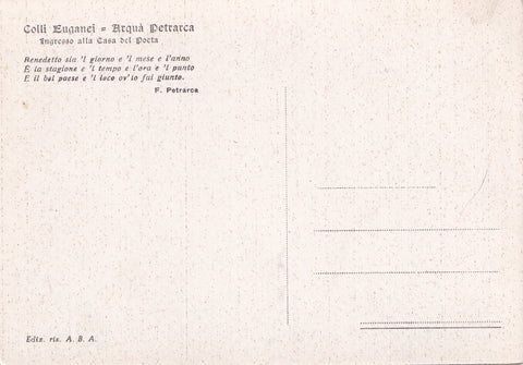 AK Arquà Petrarca. Ingresso alla Casa del Poeta. Ungelaufen. Großformat. Verlag: A.B.A. Zustand: gut.