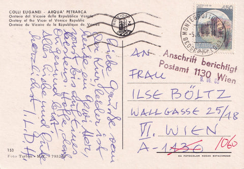 AK Arquà Petrarca. Oratorio del Vicario della Repubblica Veneta. Gelaufen. Großformat. Verlag: Turlon. Nummeriert: 153. Zustand: gut.