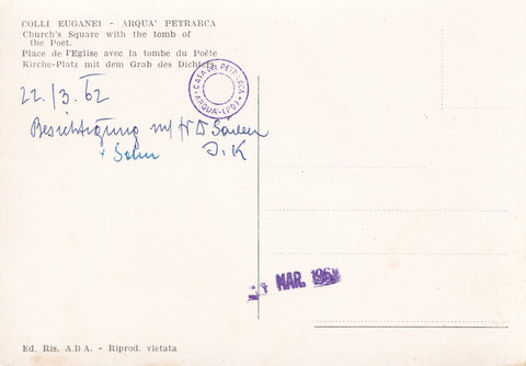 AK Arquà Petrarca. Piazzale della Chiesa con la Tomba del Poeta. Ungelaufen. Großformat. Verlag: A.B.A. Zustand: gut.