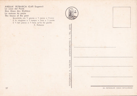 AK Arquà Petrarca. la Casa del Poeta. Unglaufen. Großformat. Verlag: Turlon. Nummeriert: 37. Zustand: gut.
