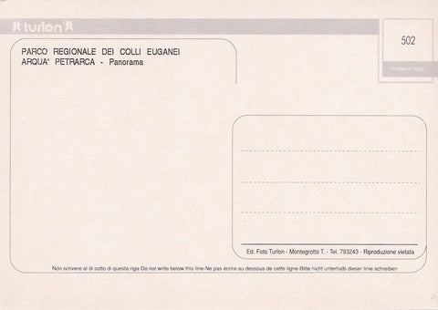 AK Arquà Petrarca. Panorama. Ungelaufen. Großformat. Verlag: Turlon. Nummeriert: 502. Zustand: gut.