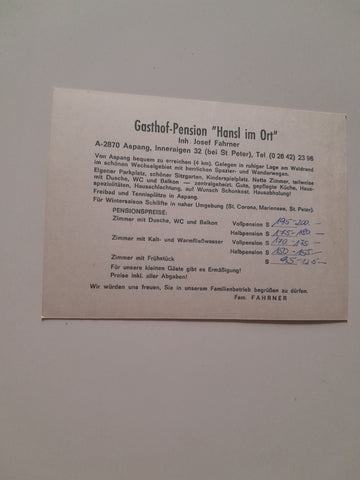 AK Aspang. Inneraigen 32 (bei St. Peter) Gasthof Pension Hansl im Ort. Inh. Josef Fahrner. Großformat. Zustand: gut.