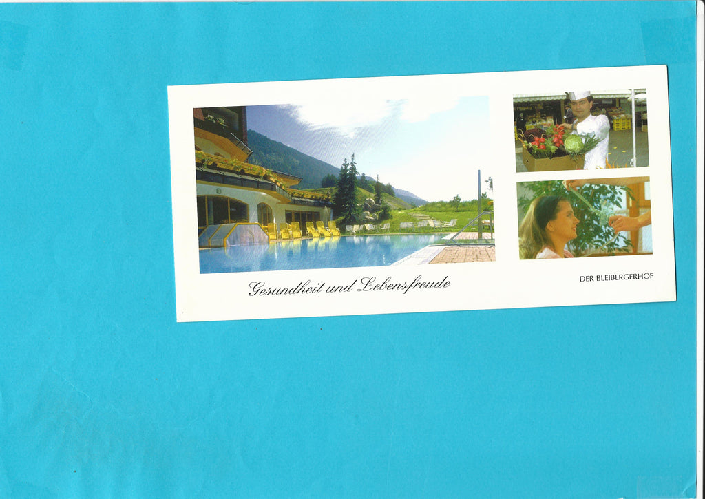 AK Bad Bleiberg. Bleibergerhof. Familie Süssenbacher. Drei Lärchen 150. Ungelaufen. Format: 21 x 10 cm. Zustand: gut, linkes unteres Eck geknickt.