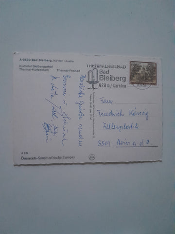 AK Bad Bleiberg. Gelaufen. Großformat. Verlag: Steinmann. Nummeriert: 574. Zustand: gut, rechtes oberes Eck geknickt.