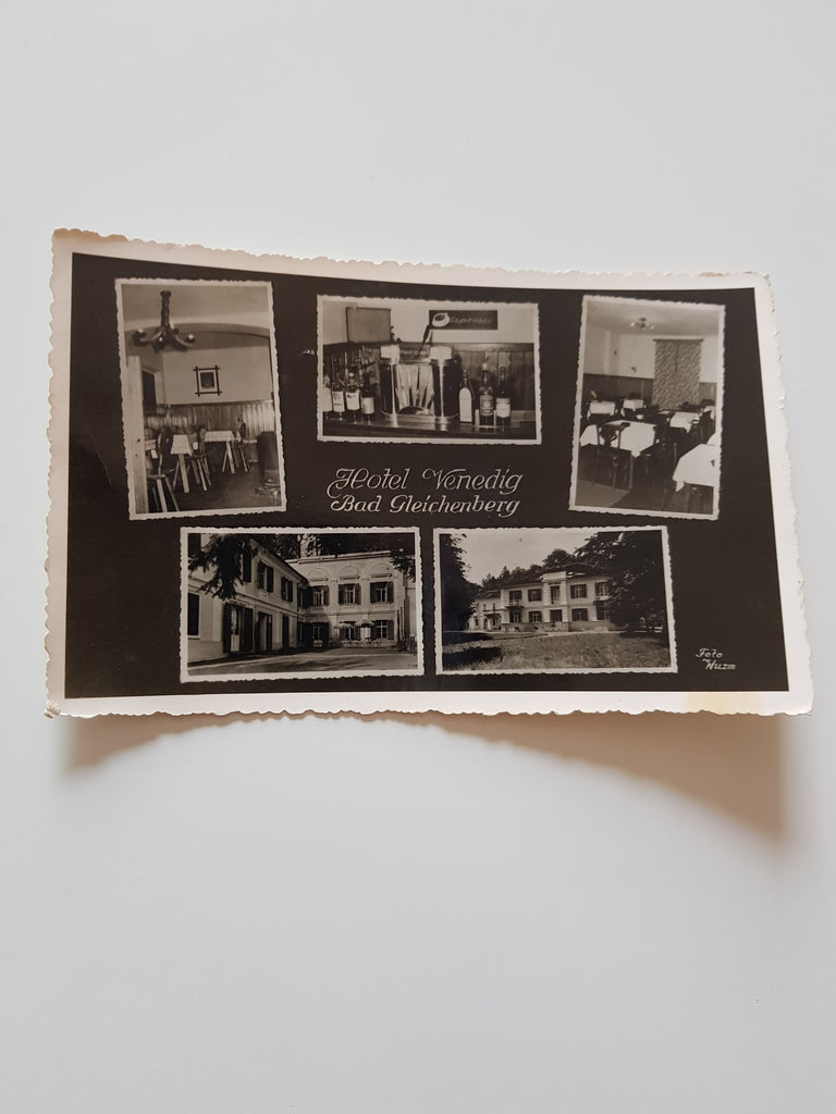 AK Bad Gleichenberg. Hotel Venedig. Gelaufen. Kleinformat. Verlag: Wurm. Zustand: Kleberückstände an Rückseite, stärker bestoßen.