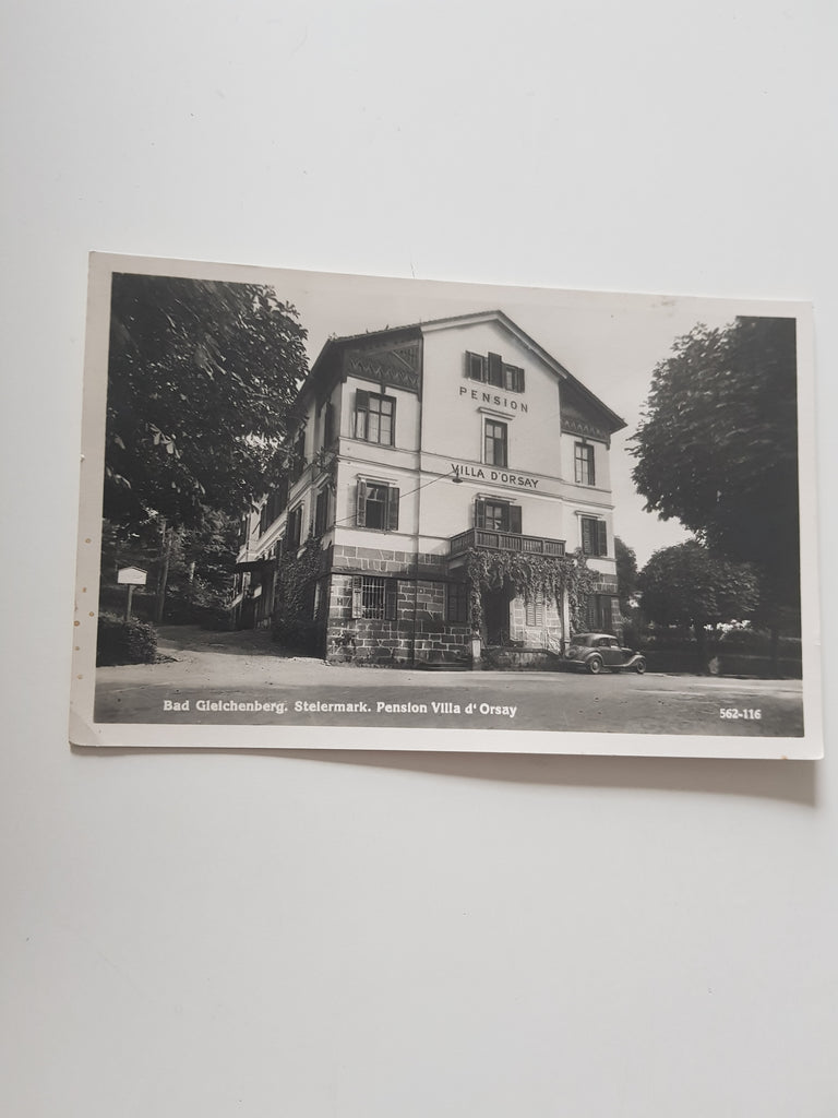 AK Bad Gleichenberg. Pension Villa d'Orsay. (1950-51) Gelaufen. Kleinformat. Verlag: Frank. Nummeriert: 562-116. Zustand: gut, linkes unteres Eck angeknickt.