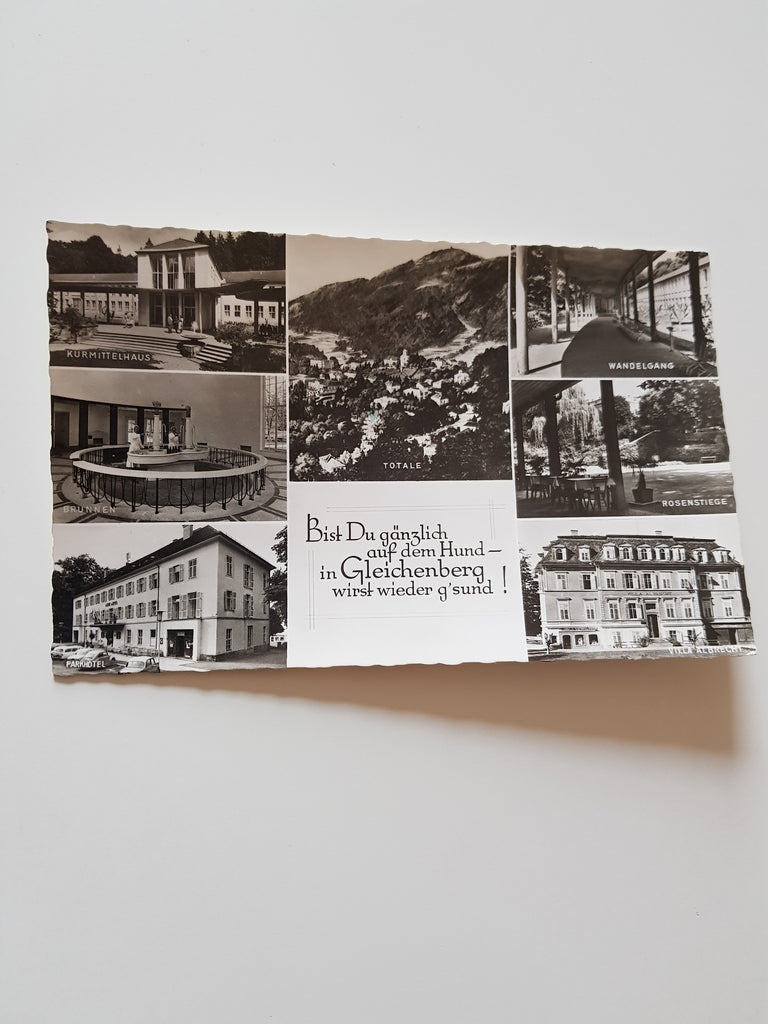 AK Bist du gänzlich auf dem Hund in Gleichenberg wirst wieder g'sund. (1962) Gelaufen. Kleinformat. Verlag: Ledermann. Zustand: gut.