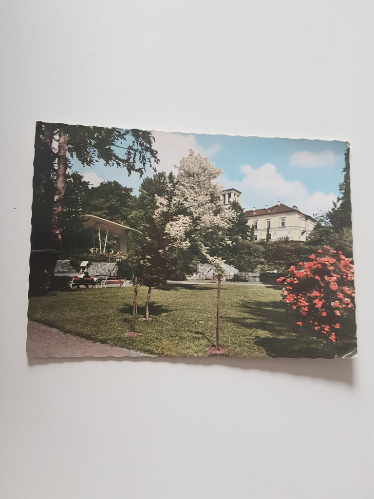 AK Bad Gleichenberg. Musikterrasse im Kurpark. Gelaufen. Großformat. Verlag: Ledermann. Nummeriert: 73012. Zustand: rechte Ecken und am linken Rand geknickt.
