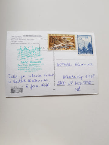 AK Bad Hofgastein. Cafe-Restaurant Weitmoserschlößl. Bes. Fam. Sendlhofer Scharfetter. Gelaufen. Großformat. Verlag: Wolkersdorfer. Nummeriert: 586. Zustand: gut.
