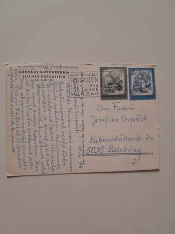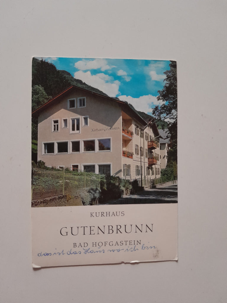 AK Bad Hofgastein. Kurhaus Gutenbrunn. Gelaufen. Großformat. Verlag: Wolkersdorfer. Zustand: rechtes oberes Eck geknickt, andere Ecken angestoßen.