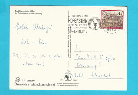 AK Bad Hofgastein. Gasteinertal. Gelaufen. Großformat. Verlag: Monopol. Nummeriert: 9166259. Zustand: rechtes unteres Eck und am unteren Rand geknickt.