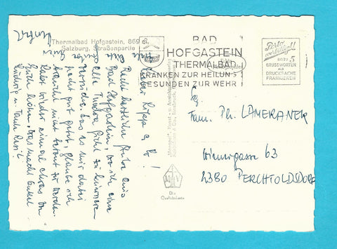 AK Bad Hofgastein. Straßenpartie. Gelaufen, aber Briefmarke wurde entfernt. Großformat. Verlag: Monopol. Nummeriert: 20778. Zustand: Knicke.