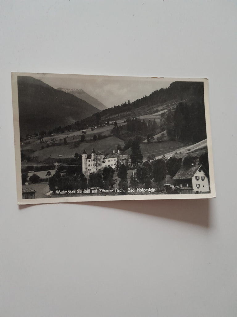 AK Bad Hofgastein. Weitmoser Schlößl mit Zitrauer Tisch. Gelaufen. Kleinformat. Verlag: Kronberger. Nummeriert: 427. Zustand: stärker bestoßen.