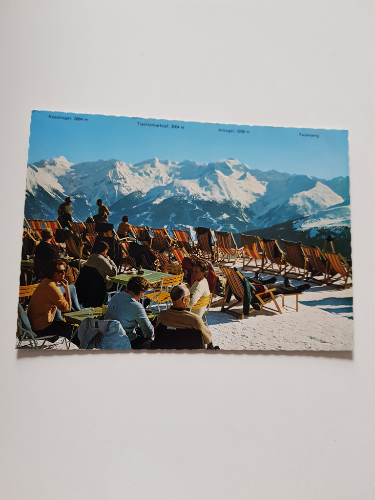 AK Bad Hofgastein. Sonnen-Terrasse der Seilbahn-Bergstation Kleine Scharte. Gelaufen. Großformat. Verlag: Cosy. Nummeriert: 787. Zustand: gut.