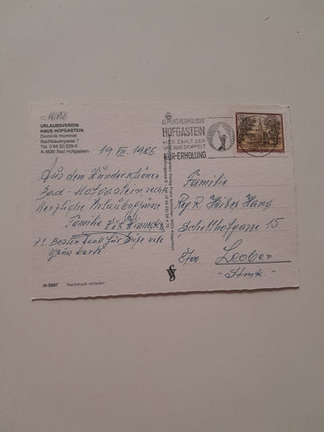 AK Bad Hofgastein. MB Urlaubsverein Haus Hofgastein Dominik Hummel. Bachbauergasse 7. Gelaufen. Großformat. Verlag: Schilcher. Nummeriert: 5047. Zustand: gut.