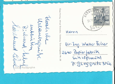 AK Bad Hofgastein. Seilbahn zur Kleinen Scharte. Gelaufen. Kleinformat. Verlag: Cosy. Nummeriert: 748. Zustand: gut, obere Ecken angeknickt.
