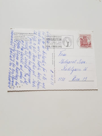 AK Bad Hofgastein. Frühstückspension Meilenstein. Peter und Margit Kreuzthaler. Gelaufen. Großformat. Verlag: Wolfsbauer. Nummeriert: 51. Zustand: gut, linkes unteres Eck geknickt.