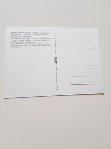 AK Bad Kleinkirchheim. Pension Jörghof Familie Franz Lercher. Zirkitzen 17. Ungelaufen. Großformat. Verlag: Nest. Nummeriert: 573. Zustand: gut.
