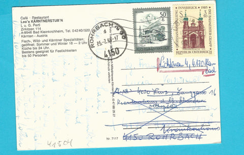 AK Bad Kleinkirchheim. Cafe Restaurant Leo's Kärntnerstub'n. Gelaufen. Großformat. Verlag: Tollinger. Nummeriert: 7117. Zustand: Ecken und am Rand geknickt.