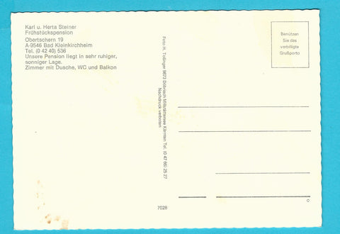 AK Bad Kleinkirchheim. Karl u. Herta Steiner Frühstückspension Obertschern 19. Ungelaufen. Großformat. Verlag: Tollinger. Nummeriert: 7028. Zustand: gut.
