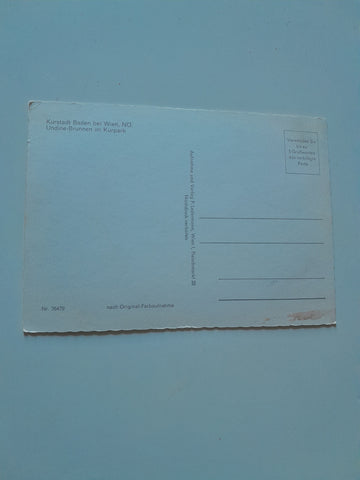AK Baden bei Wien. Undine-Brunnen im Kurpark. Ungelaufen. Großformat. Verlag: Ledermann. Nummeriert: 76479. Zustand: gut, rechtes oberes Eck geknickt.