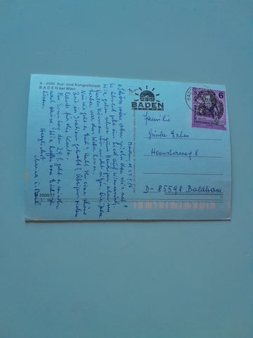 AK Baden bei Wien. Gruss vom Heurigen. Gelaufen. Großformat. Verlag: Meixner. Nummeriert: 2500/77. Zustand: gut.
