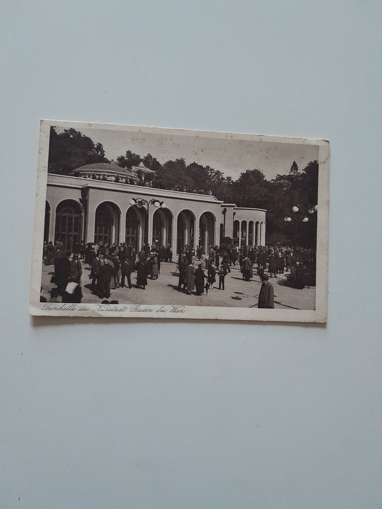 AK Baden bei Wien. Trinkhalle. Gelaufen. Kleinformat. Verlag: Schiestl. Zustand: gut, linkes unteres und am unteren Rand geknickt.