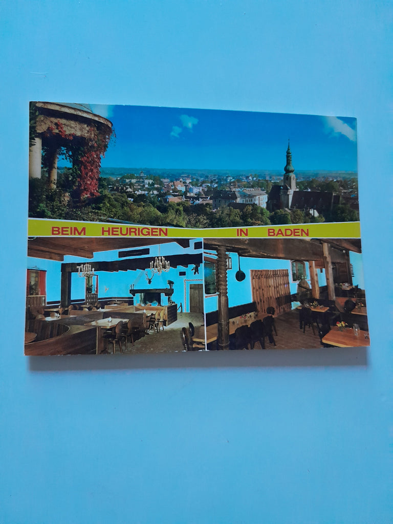 AK Baden bei Wien. Stadtansicht. Streiterhof. Heuriger. Leesdorfer Hauptstraße 64. Gelaufen. Großformat. Verlag: Meixner. Nummeriert: 2500/77. Zustand: gut.