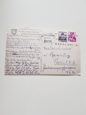 AK Badgastein. Hotel Straubinger. Gelaufen. Kleinformat. Zustand: gut, linkes oberes Eck angeknickt.