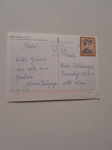 AK Badgastein. Gelaufen. Großformat. Verlag: Cosy. Nummeriert: 708. Zustand: linkes unteres Eck geknickt.