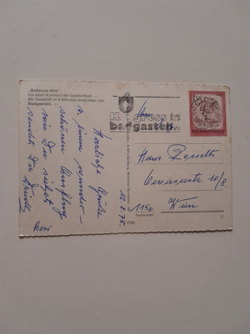 AK Badgastein. Bellevue-Alm. Gelaufen. Großformat. Verlag: Cosy. Nummeriert: 2763. Zustand: obere Ecken geknickt.