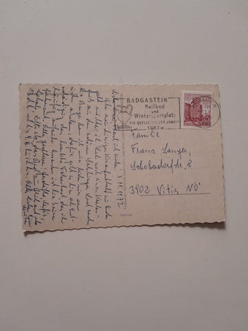 AK Badgastein. Gelaufen. Großformat. Verlag: Schönes Österreich. Nummeriert: 5640/W6. Zustand: gut, rechtes unteres Eck geknickt.