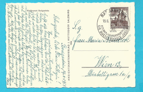 AK Badgastein. Gelaufen. Großformat. Verlag: Huttegger. Nummeriert: 1056. Zustand: linkes unteres Eck geknickt.
