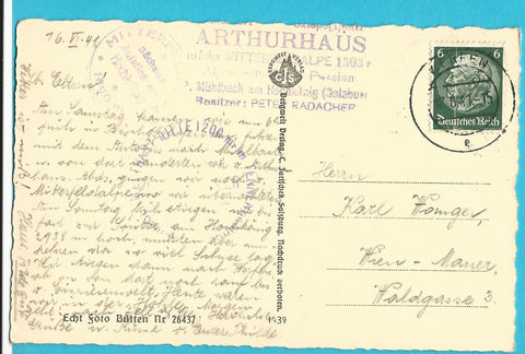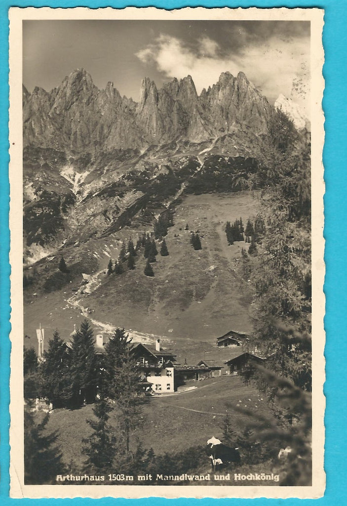 AK Arthurhaus mit Manndlwand und Hochkönig. (1939) Gelaufen. Kleinformat. Verlag: Jurischek. Nummeriert: 26437. Zustand: gut, linkes unteres Eck geknickt.