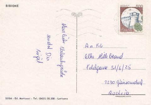 AK Bibione. Gelaufen. Großformat. Verlag: Mattiussi. Nummeriert: 10104. Zustand: gut.
