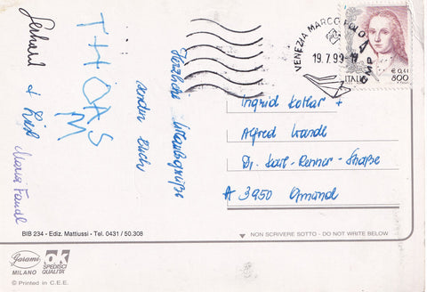 AK Bibione. Gelaufen. Großformat. Verlag: Mattiussi. Nummeriert: 234. Zustand: linkes oberes Eck geknickt.