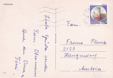 AK Bibione. Gelaufen. Großformat. Nummeriert: 310. Zustand: rechtes oberes Eck und in rechter oberer Hälfte geknickt.