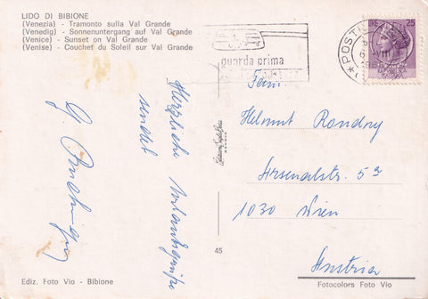 AK Bibione. Gelaufen. Großformat. Verlag: Vio. Nummeriert: 45. Zustand: rechtes unteres Eck geknickt.