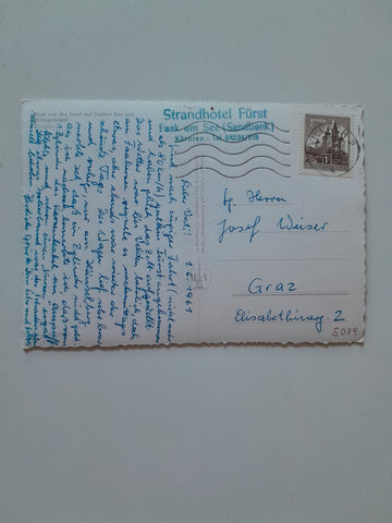 AK Blick von der Insel auf Faaker See und Mittagskogel. Gelaufen. Großformat. Verlag: Monopol. Nummeriert: 209?3. Zustand: Ecken angestoßen.