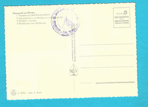 AK Alpengruß aus Kärnten. Trachten aus Bad Kleinkirchheim. Gailtalerinnen mit Wulfenia am Gartnerkofel. Gailtaler Trachten. Musikanten am Weißensee. Ungelaufen. Großformat. Verlag: Monopol. Nummeriert: C 25704. Zustand: gut.