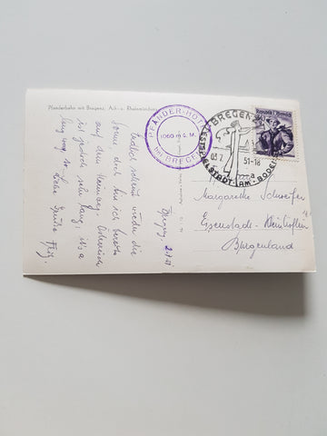 AK Bregenz mit Pfänderbahn. Gelaufen. Kleinformat. Verlag: Schlegel. Nummeriert: 110. Zustand: gut, leicht bestoßen.
