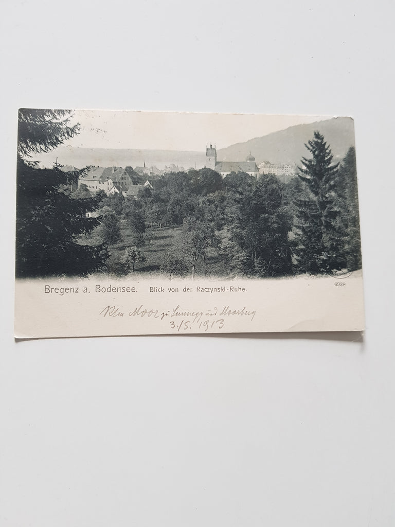 AK Bregenz. Blick von der Racynski-Ruhe. Gelaufen. Kleinformat. Verlag: Hoffmann. Nummeriert: 6938. Zustand: gut, leichter Knick am unteren Rand.