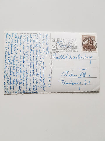 AK Bregenz mit Pfänderbahn. Gelaufen. Kleinformat. Verlag: Spang. Zustand: linke Ecken geknickt.