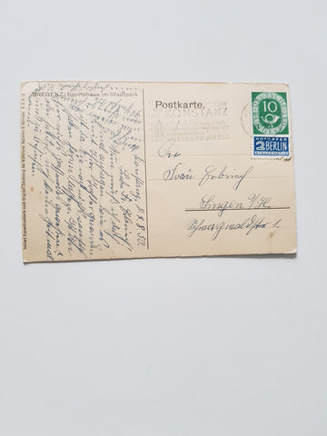 AK Bregenz: Sporthaus im Stadtpark. Gelaufen. Kleinformat. Zustand: gut.