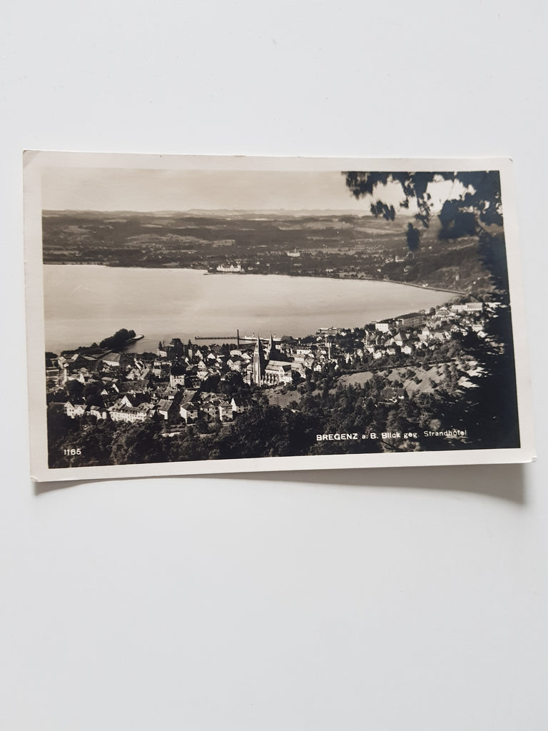 AK Bregenz. Blick geg. Strandhotel. Gelaufen. Kleinformat. Verlag: Bader. Nummeriert: 1165. Zustand: Knicke am oberen Rand.