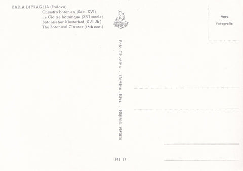 AK Badia di Praglia. Chiostro botanico. Ungelaufen. Großformat. Verlag: Ghedina. Nummeriert: 394 27. Zustand: gut.