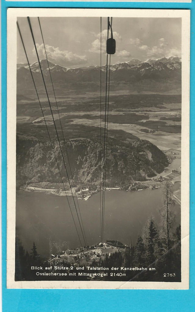 AK Blick auf Stütze 2 und Talstation der Kanzelbahn am Ossiachersee mit Mittagskogel. Gelaufen. Kleinformat. Verlag: Tiroler Kunstverlag. Nummeriert: 2758. Zustand: rechtes unteres Eck geknickt.