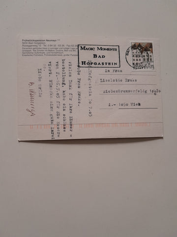 AK Bad Hofgastein. Frühstückspension Neumayr. Gelaufen. Großformat. Zustand: stärker bestoßen.