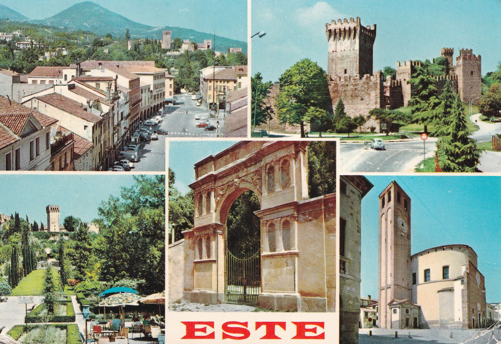 AK Este. Gelaufen, aber Briefmarke wurde entfernt. Großformat. Verlag: Facchinelli. Nummeriert: 12. Zustand: stark bestoßen.